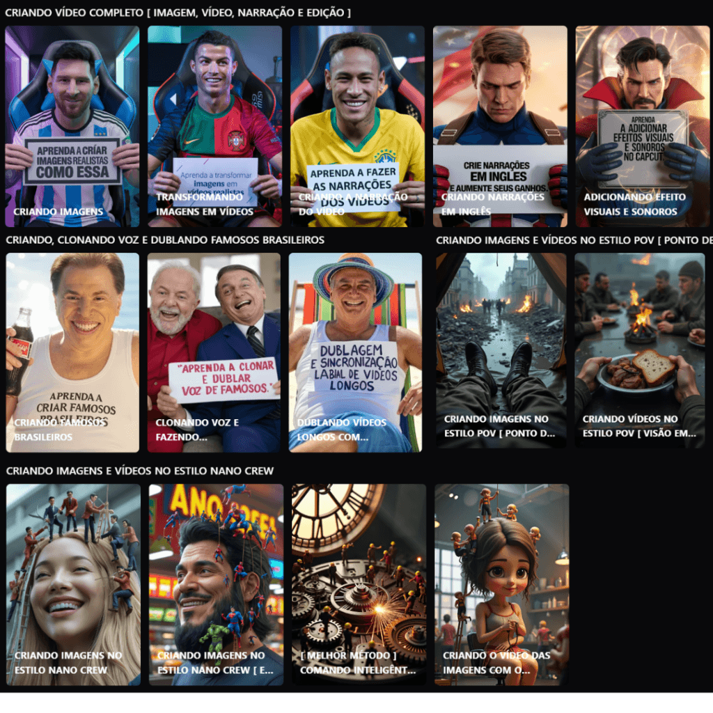✅ Criar imagens e vídeos no estilo POV (Ponto de Vista), Mini (Mini Ney, Mini Messi), Nano Crew (Pessoas ou alimentos gigantes e personagens minúsculos)